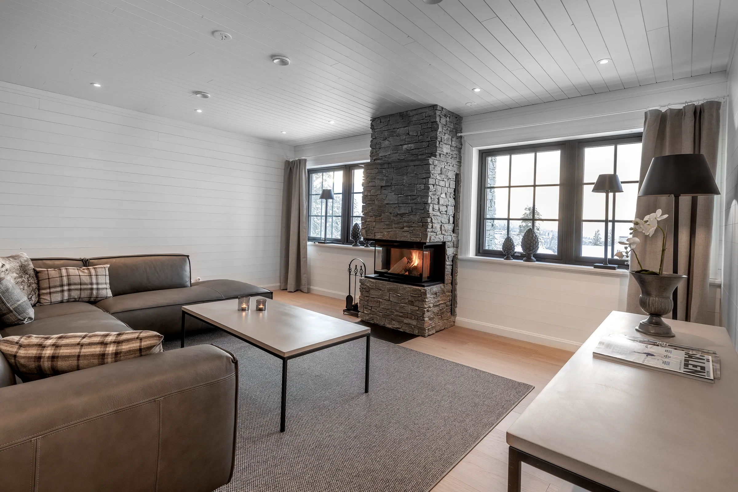 Stugan erbjuder 12 bäddar, fördelade på fem sovrum. Här finns också två braskaminer och uppvärmd skidförvaring.
